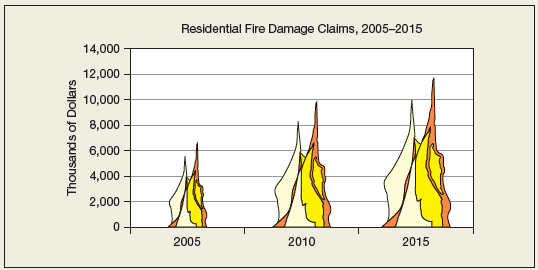 Residential Fire Damage Claims, 2005-2015 14,000 12,000 10,000 8,000 6,000 4,000 2,000 2005 2010 2015 Thousands of Dollars