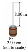 A wooden barrel full of water has a flat circular top of radius 25.0 cm with a small hole in it. A tube of height 8.00 m and inner radius 0.250 cm is suspended above the barrel with its lower end inserted snugly in the hole. Water is poured into the upper end of the tube until it is full.