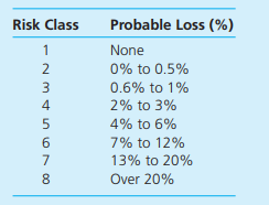 Risk Class Probable Loss (%) 1 None 2 0% to 0.5% 0.6% to 1% 4 2% to 3% 5 4% to 6% 6 7% to 12% 7 13% to 20% 8. Over 20%