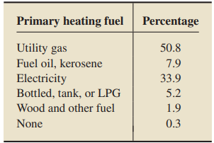 Suppose that you want to determine whether the distribution of primary heating fuel for occupied housing units built after 2010 differs from that of all occupied housing units. To decide, you take a random sample of housing units built after 2010 and obtain a frequency distribution of their primary heating fuel.