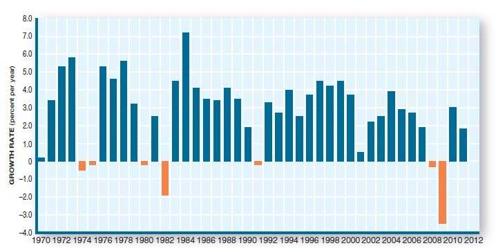 8.0 7.0 6.0 5.0 4.0 3.0 2.0 1.0 -1.0 -2.0 -3.0 -4.0 1970 1972 1974 1976 1978 1980 1982 1984 1986 1988 1990 1992 1994 1996 1998 2000 2002 2004 2006 2008 2010 2012 GROWTH RATE (percet per year)