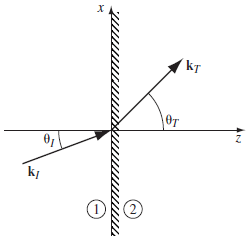 ![According to Snell’s law, when light passes from an optically dense medium into a less dense one (n1 > n2) the propagation vector k bends away from the normal (Fig. 9.28). In particular, if the light is incident at the critical angle