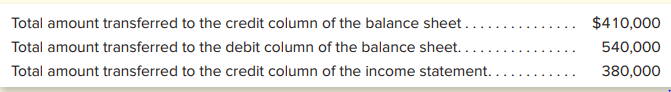 Accountants at Warner Co. use worksheets similar to the one shown in Exhibit 5â13. In the companyâs most current year-end worksheet, the amounts transferred from the adjusted trial balance columns to the balance sheet and income statement columns are as follows.