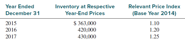 Year Ended Inventory at Respective Relevant Price Index December 31 Year-End Prices (Base Year 2014) $ 363,000 420,000 2015 1.10 2016 1.20 2017 430,000 1.25