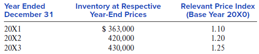 Compute the inventory amounts at December 31, 20X1, 20X2, and 20X3, using the dollar-value LIFO inventory method for each year.