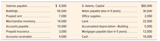 Adams Co. reports the following balance sheet accounts as of December 31. Prepare a classified balance sheet.