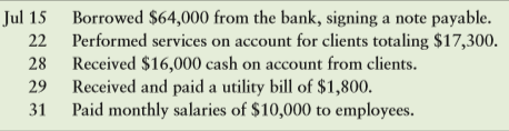 After operating for several months, architect Donovan Freeman completed the following transactions during the latter part of July:
