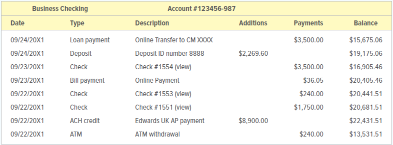 4. The loan payment on 9/24/20X1 was an automatic debit by Central Motors for the companyâs monthly payment on a loan for its automobiles. The loan does not bear interest.