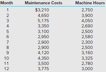 Albedo Inc. manufactures high-end replacement telescope lenses for amateur and professional astronomers that are seeking to upgrade the performance of their telescopes. You have just become employed as a staff accountant at Albedo and Jordan Coleman, the controller, has asked you to help with maintenance cost estimation for the lens manufacturing process. You review the manufacturing process and decide that the best cost driver for maintenance costs is machine-hours. These data are from the previous fiscal year for maintenance expense and machine-hours: