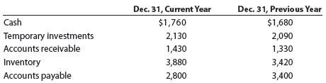 Aloha Company reported the following current assets and liabilities for December 31 for two recent years: