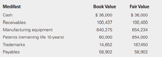 Alto Devices acquires Medifast, a small start-up company, by paying $2,170,000 in cash on January 2. Following are the book values and fair values of Medifast on the date of acquisition.