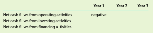 Year 1 Year 2 Year 3 Net cash fl ws from operating activities negative Net cash fl ws from investing activities Net cash fl ws from financing a tivities