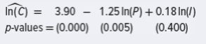 In(C) = 1.25 In(P) + 0.18 In(/) (0.400) 3.90 p-values = (0.000) (0.005) %3D