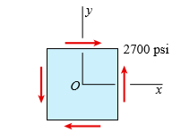 An element on the surface of a drive shaft is in pure shear and is subjected to stresses Ïxy = 2700 psi, as shown in the figure. Using Mohrâs circle, determine the following.