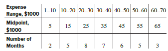 An engineer collected monthly operating expenses for the past 3 years for a micro-finishing department. Use the midpoints of each range in preparing your answers.