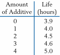 An engineer found that by adding small amounts of a compound to rechargeable batteries during manufacture, she could extend their lifetimes. She experimented with different amounts of the additive (g) and measured the hours they lasted in a laptop.