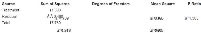 An experiment to determine the effect of several methods of preparing cultures for use in commercial yogurt was conducted by a food science research group. Three batches of yogurt were prepared using each of three methods: traditional, ultrafiltration, and reverse osmosis. A trained expert then tasted each of the 9 samples, presented in random order, and judged them on a scale from 1 to 10. A partially completed Analysis of Variance table of the data follows.