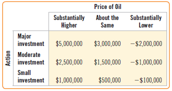 Price of Oil Substantially About the Higher Substantially Lower Same Major investment $5,000,000 $3,000,000 -$2,000,000 Moderate investment $2,500,000 $1,500,000 -$1,000,000 Small investment $1,000,000 $500,000 -$100,000 Action