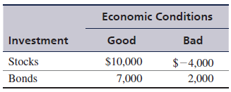 An investor must decide between two alternative investmentsâstocks and bonds. The return for each investment, given two future economic conditions, is shown in the following payoff table: