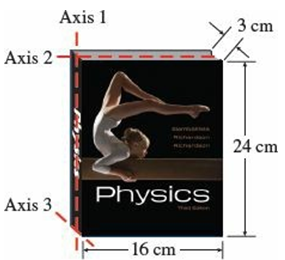 > A book measures 3 cm by 16 cm by 24 cm. About which of the axes shown in the figure is its rotational inertia smallest?