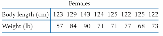 > An ongoing study of wolves is being conducted at the Yukon-Charley Rivers National Preserve. Table in the Data Bank gives the physical characteristics of wolves that were captured. (a) Plot length versus weight for the male wolves. From your visual inspe