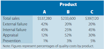 > Given the cost elements in the table below, deter- mine the total percentage in each of the four major quality-cost categories.