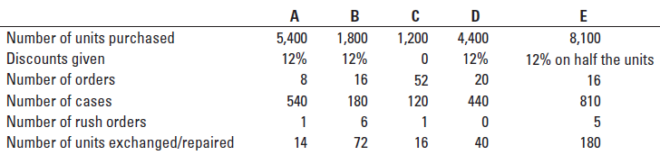 All customers except E ordered units in the same order size. Customer Eâs order quantity varied, so E got a discount part of the time but not all the time.