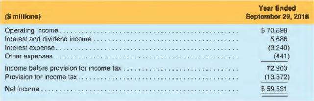 The following information is taken from the company's fiscal 2018 income statement and footnotes: