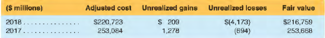 Finally, the following table is taken from Note 2 of Apple's 2018 10-K annual report. The reported numbers are slightly higher than those reported from Apple's balance sheet above because some AFS securities are classified as cash equivalents on the balance sheet, rather than marketable securities.