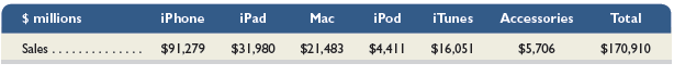 Apple reports the following net sales by product segments. Compute the percentage of total sales for each of its six product segments. Comment on the relative contributions of each product segment.