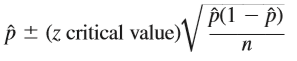 > The formula used to calculate a large-sample confidence interval for p is What is the appropriate z critical value for each of the following confidence levels? a. 95% b. 98% c. 85% P(1 – p) p + (z critical value)\