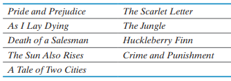 As part of a college literature course, students must read three classic works of literature from the provided list. Obtain a simple random sample of size 3 from this list. Write a short description of the process you used to generate your sample.