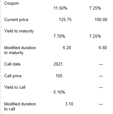 As part of your analysis of debt issued by Monticello Corporation, you are asked to evaluate two specific bond issues, shown in the table below.