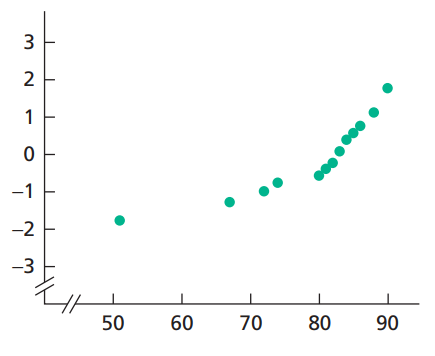 > A sample of the final exam scores in a large introductory statistics course is as follows. a. use Table III in Appendix A to construct a normal probability plot of the given data. b. use part (a) to identify any outliers. c. use part (a) to assess the no