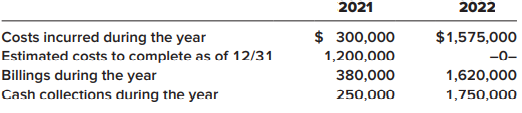 Assume Nortel Networks contracted to provide a customer with Internet infrastructure for $2,000,000. The project began in 2021 and was completed in 2022. Data relating to the contract are summarized below:
