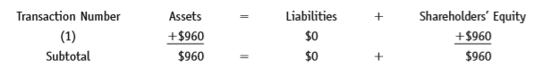 Transaction Number Assets Liabilities Shareholders' Equity (1) +$960 $0 +$960 Subtotal $960 $0 + $960