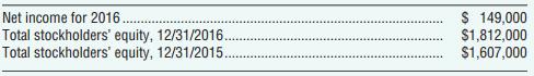 Net Income for 2016. Total stockholders' equity, 12/31/2016. Total stockholders' equity, 12/31/2015. $ 149,000 $1,812,000 $1,607,000