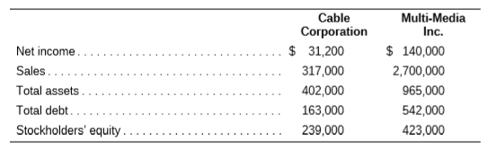Assume the following data for Cable Corporation and Multi-Media Inc.