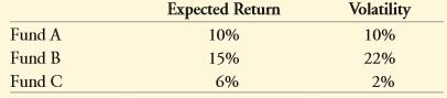 Expected Return Volatility Fund A 10% 10% Fund B 15% 22% Fund C 6% 2%