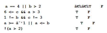 > The following truth table shows various combinations of the values true and false connected by a logical operator. Complete the table by circling T or F to indicate whether the result of such a combination is true or false.