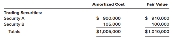 > Rantzow-Lear Company buys and sells debt securities expecting to earn profits on short-term differences in price, and holds these investments in its trading portfolio. The company’s fiscal year ends on December 31. The following selected transactions rel