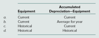 Accumulated Equipment Depreciation-Equipment a. Current Current b. Current Average for year Historical Current Historical C. d. Historical