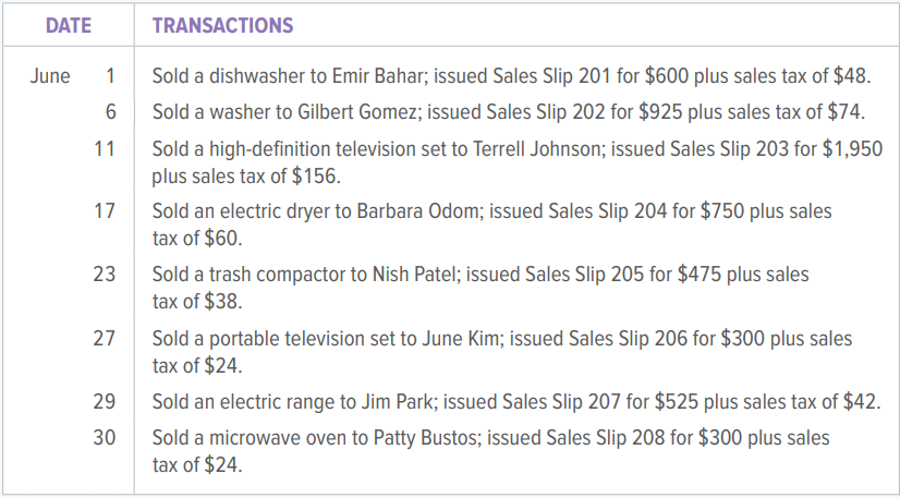 Awesome Appliances is a retail store that sells household appliances. Merchandise sales are subject to an 8 percent sales tax. The firmâs credit sales for June are listed below Instruction 4, along with the general ledger accounts used to record these sales. The balance shown for Accounts Receivable is for the beginning of the month.