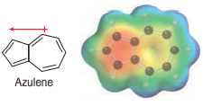 Azulene exhibits an appreciable dipole moment, and an electrostatic potential map indicates that the five-membered ring is electron rich (at the expense of the seven-membered ring).