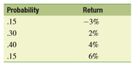 Probability Return .15 -3% .30 2% .40 4% .15 6%