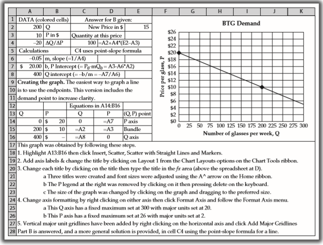 We now demonstrate how Excel can be used to answer this problem. This allows you to easily conduct a what-if or sensitivity analysis. It also prepares you to use Excel to analyze and estimate more complex demand relationships such as those presented in Chapters 4 and 5. Note: This problem requires three important assumptions.