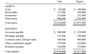 Balance sheets for Salt Company and Pepper Company on December 31, 2013, follow: