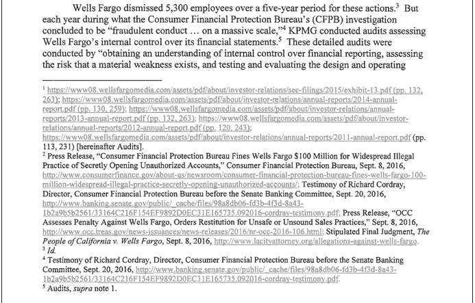 Apparently, leaders within the bank became aware of these practices among branch level employees before the Complaint was filed by the City of Los Angeles. Between 2013 and 2015, the bank fired 5,300 employees for these inappropriate practices. At the time, the bank employed over 270,000 individuals.