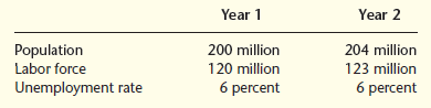 Year 1 Year 2 Population 200 million 204 million Labor force 120 million 123 million Unemployment rate 6 percent 6 percent