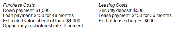 > Based on the following data, prepare a financial comparison of buying and leasing a motor vehicle with a $24,000 cash price: What other factors should a person consider when choosing between buying or leasing?